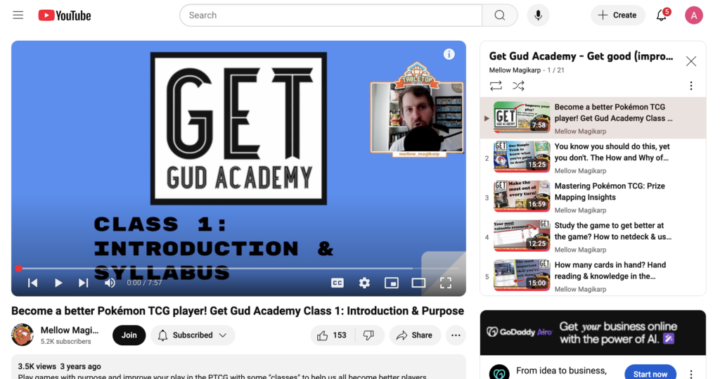 Beyond deck consistency, I’ve found content from other creators incredibly helpful. One of my favorites is Mellow Magikarp’s YouTube series, Git Good Academy, which teaches essential skills such as checking your prizes, prize mapping, and more. After watching a video about checking prizes, I can confidently say it has improved my gameplay at both League Cups and League Challenges.